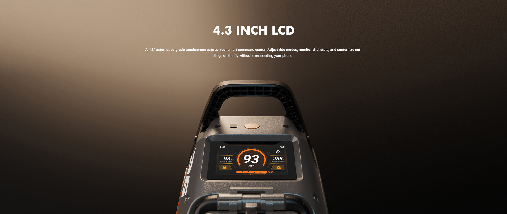 The 4200Wh pack is built with industry-leading Samsung 50S cells for proven reliability and maximum range. Complemented by a full IPX7 waterproof rating, this battery system is the reliable foundation for all the performance to come.