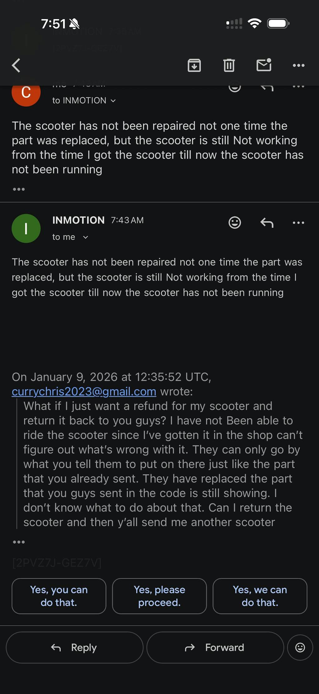 Overall, I am not happy with my experience and cannot recommend doing business with InMotion given the lack of support and the ongoing issues with the scooter. If I had known about these challenges, I would have reconsidered my purchase.