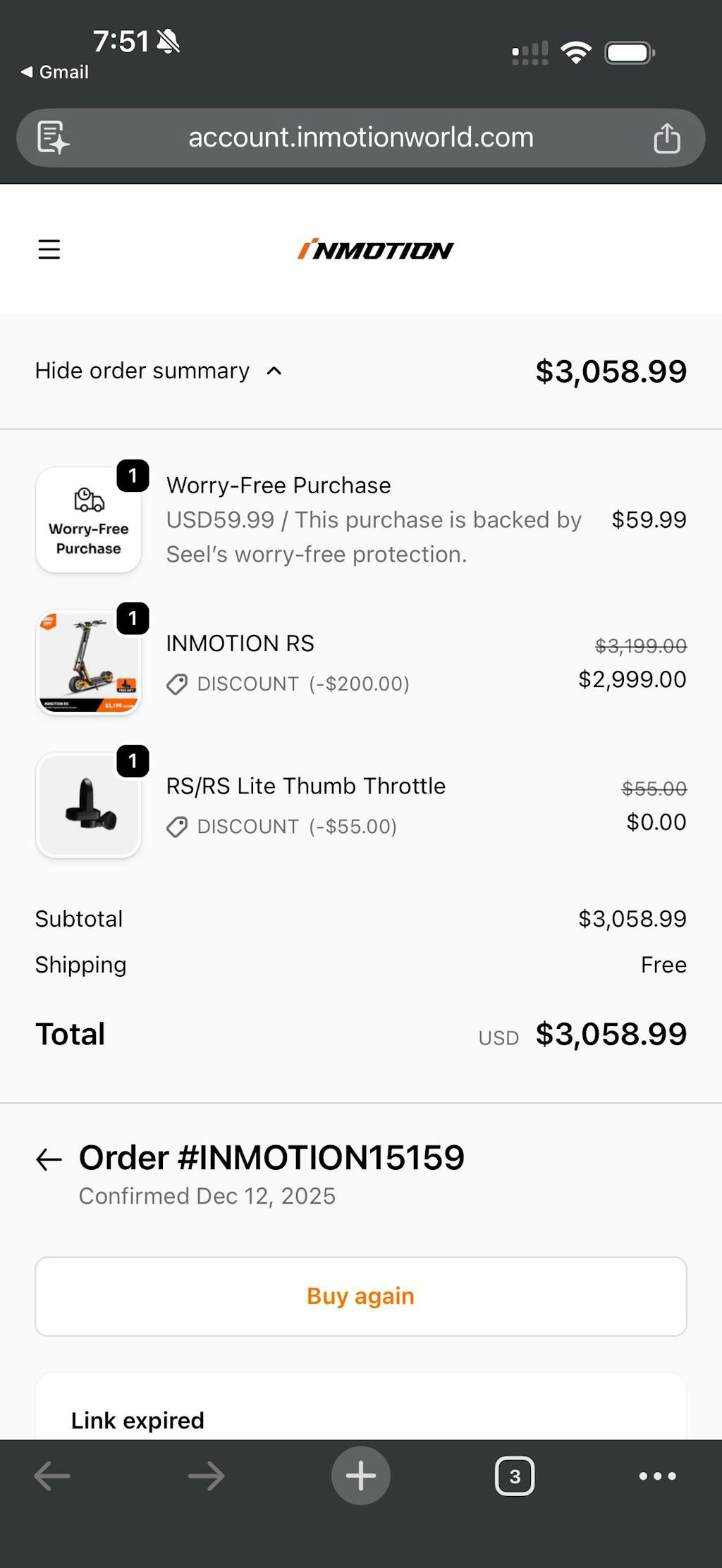 I purchased the InMotion RS scooter back in December, hoping to have it in time for Christmas. Unfortunately, the delivery time was incredibly long—approximately 2.5 to 3 weeks. After spending around $3,500, I was disappointed to encounter issues right from the start.